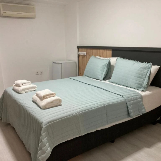 Tüm alanlarımız, yüksek temizlik standartlarına uygun olarak düzenli şekilde dezenfekte edilmektedir. Günlük oda temizliği ve titiz hizmet anlayışımızla misafirlerimize her zaman güvenli bir ortam sağlanır.